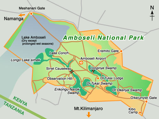(Note: No fuel stations inside Amboseli; refuel at Kimana, Emali, or Namanga before entry.)